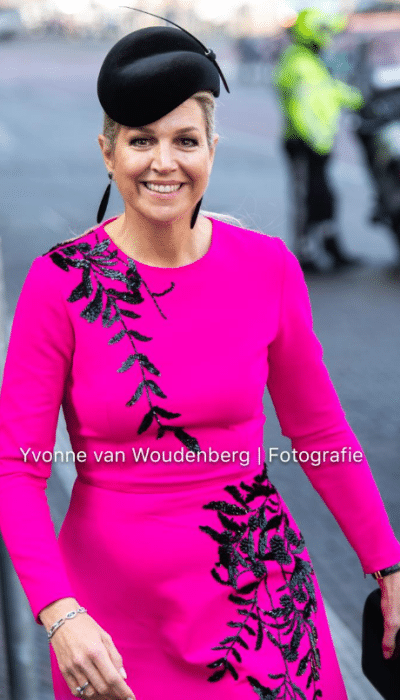 De jurk past Maxima niet goed en de bloemenslinger, er is iets mee wat m.i. niet klopt. De vlakverdeling misschien? 🤔