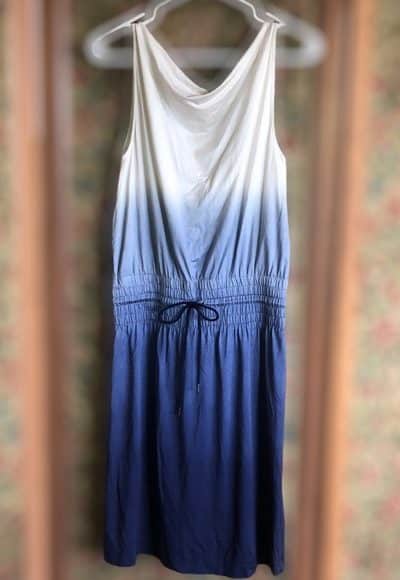 Voor de zomerfotosessie van 2010 besluit Máxima te gaan shoppen in de Bijenkorf. Daar stuit ze op een blauw-witte jurk met kleurverloop rond de taille en een hoge, ronde hals. Een ontwerp van Strenesse. Na het succesvolle debuut verdwijnt de jurk buiten beeld.