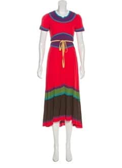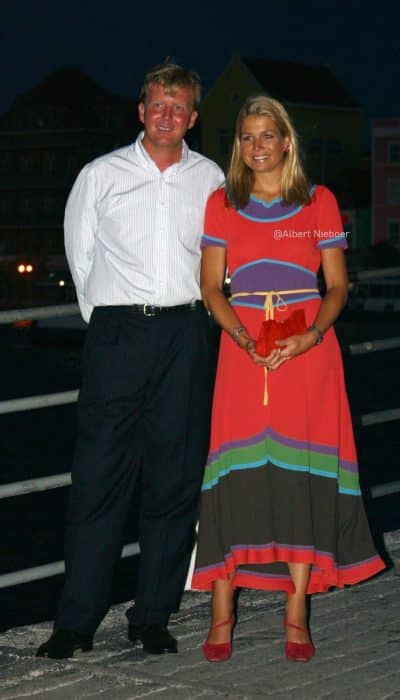 Rond 2002 is Marc Jacobs de daredevil van de modeindustrie. Voor een van zijn zomercollecties ontwerpt hij een jurk met een opvallend kleurenpalet: rood, groen, paars, felblauw en geel. Over vloekende tinten gesproken! Toch blijken de kleuren tezamen een bijzondere harmonie te vormen. Na het debuut in juni 2002 draagt Máxima de showstopper nog drie keer.