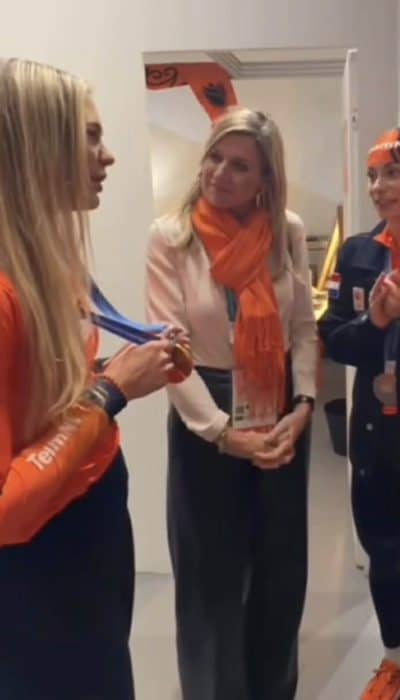 Tijdens de Olympische Spelen in Milaan introduceert Máxima een zwarte, leren broek, die ze combineert met een witte blouse. De beelden van de nieuwe set zijn helaas niet scherp genoeg om de kledingstukken te kunnen identificeren. Nu maar hopen dat ze binnenkort nog een keer gedragen worden!