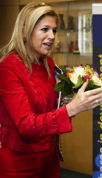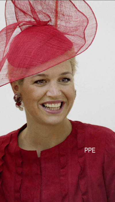 In 2006 zijn ballonrokken in de mode. Máxima schaft er meerdere aan, waaronder dit rode exemplaar van Natan. Ook het jasje met ruches komt bij het Belgische modehuis vandaan.