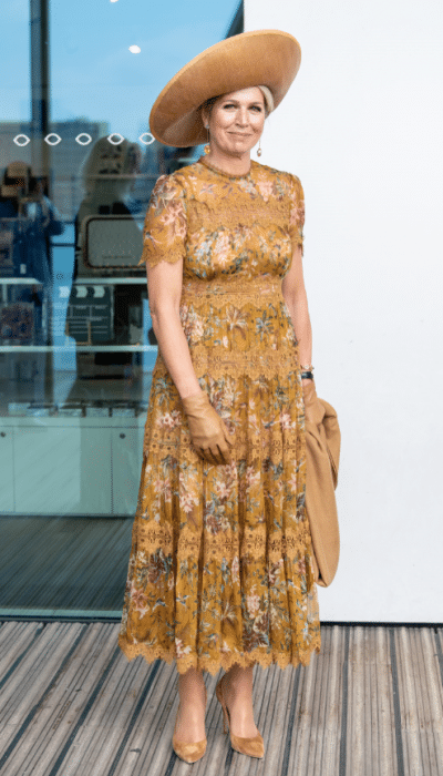 Mosterdgele japon van het badkledingmerk Zimmermann. De outfit werd door Máxima gekocht in 2016 tijdens het staatsbezoek aan Australië. Samen met koning Willem-Alexander bezocht de koningin op een vrij moment de boetiek van het merk en kocht er vijf verschillende items. In de Australische krant The West Australian vertelt een verkoopster meer over haar bijzondere ervaring. “Ze waren hier erg lang. Hij zat de hele tijd op de bank. Zij kwam steeds naar buiten (vanuit het kleedhokje, JD) en het enige wat hij zei, was een kort ‘Ja. Nee. Ja. Nee.’’ Meestal luisterde ze naar hem, maar niet altijd.”