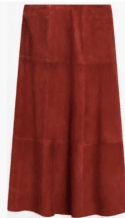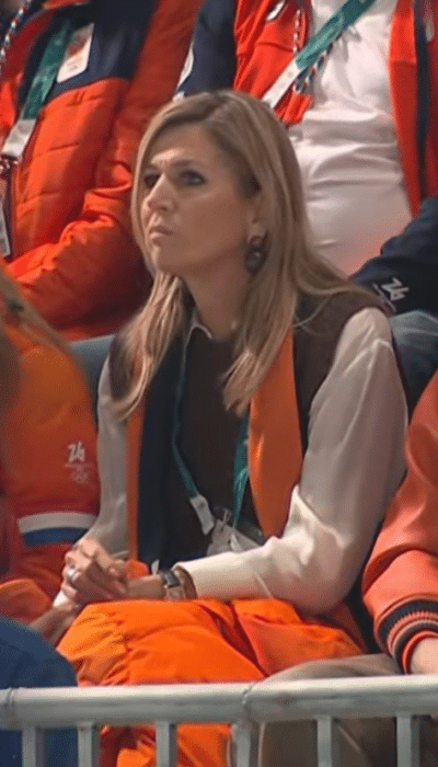 Tijdens de Winterspelen in Milaan introduceert Máxima een nieuwe set van Massimo Dutti, een Spaanse confectieketen waar Máxima graag shopt voor haar vrijetijdskleding. De gilet is gemaakt van wol, de rok van suède.