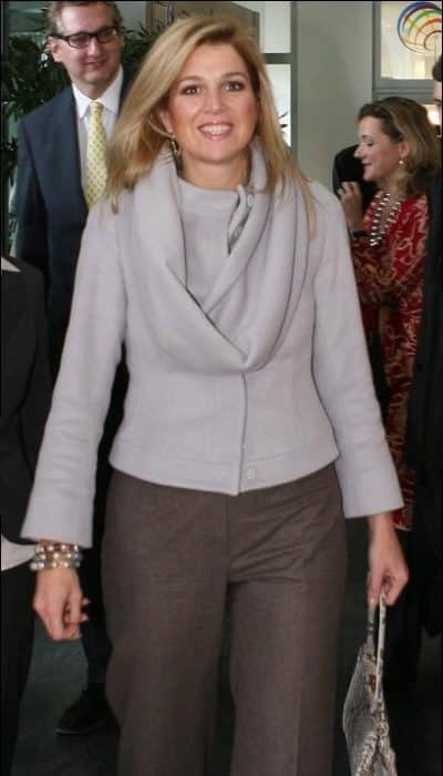 In 2008 verkoopt modehuis Natan wollen jasjes met een sluiting middenvoor en een losse, brede kraag. Máxima schaft het ontwerp in meerdere kleuren aan, waaronder in het lichtgrijs. De ene keer draagt ze de kraag losjes om haar hals, soms schuin onder haar arm door.