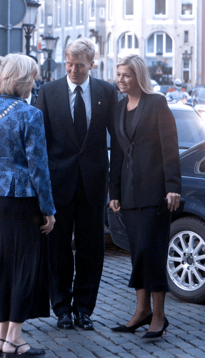 Eigenlijk zou Máxima in september 2001 een agenda vol vrolijke kennismakingsbezoeken hebben. Als op de elfde dag van de maand de aanslagen in Amerika plaatsvinden, wordt ook de koninklijke agenda leeggehaald. In plaats daarvan woont de toekomstige prinses een herdenking bij. Wie het stemmige mantelpak heeft ontworpen, is nooit achterhaald.