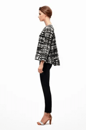 Het is een formule die vaak goed uitpakt: een wijde top boven een strakke broek. Als Máxima in 2013 een VN-bezoek brengt aan Tanzania, combineert ze een zwart-witte, oversized top met een felrode broek. Label van beide kledingstukken: Natan.