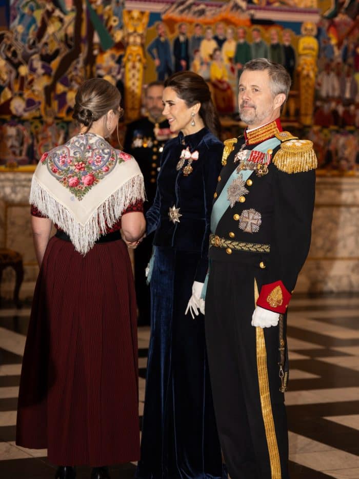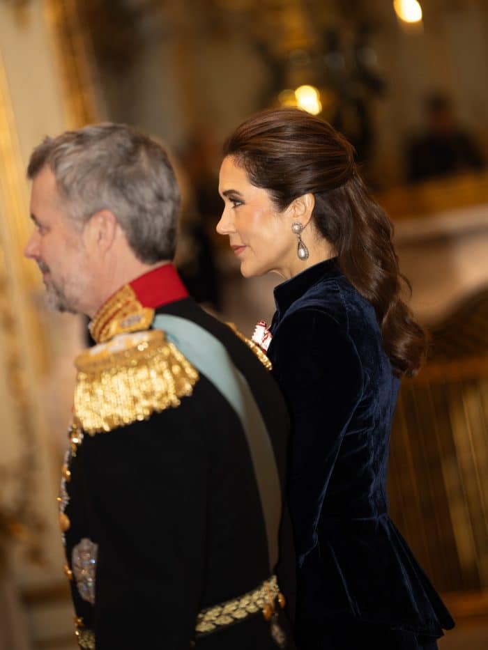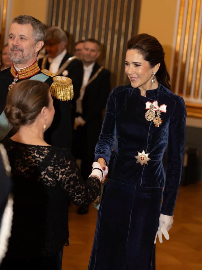 In Denemarken was het vandaag tijd voor een tweede en derde nieuwjaarsreceptie. Koningin Mary koos vandaag voor een japon van fluweel.
