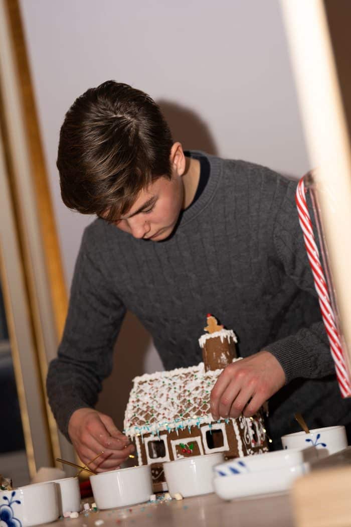 Prins Christian, prinses Isabella, prins Vincent en prinses Josephine versierden peperkoekhuisjes. Wat een stel zo samen.