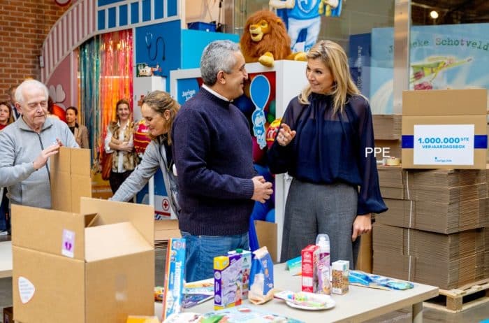 Koningin Máxima had vanmiddag een feestelijke afspraak in haar agenda staan; bij Stichting Jarige Job pakte zij de miljoenste verjaardagsbox in.