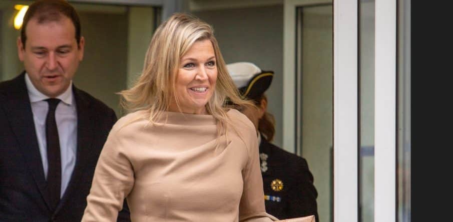 Nette, maar saaie set, bovendien zit de top niet mooi. Beige/greige is naar mijn idee geen goede kleur voor Maxima. Een contrasterende top, truitje, lange blouse, blazer etc. staat toch pittiger, maar allez. Sorry hoor, maar de oorbellen kunnen me ook niet bekoren.