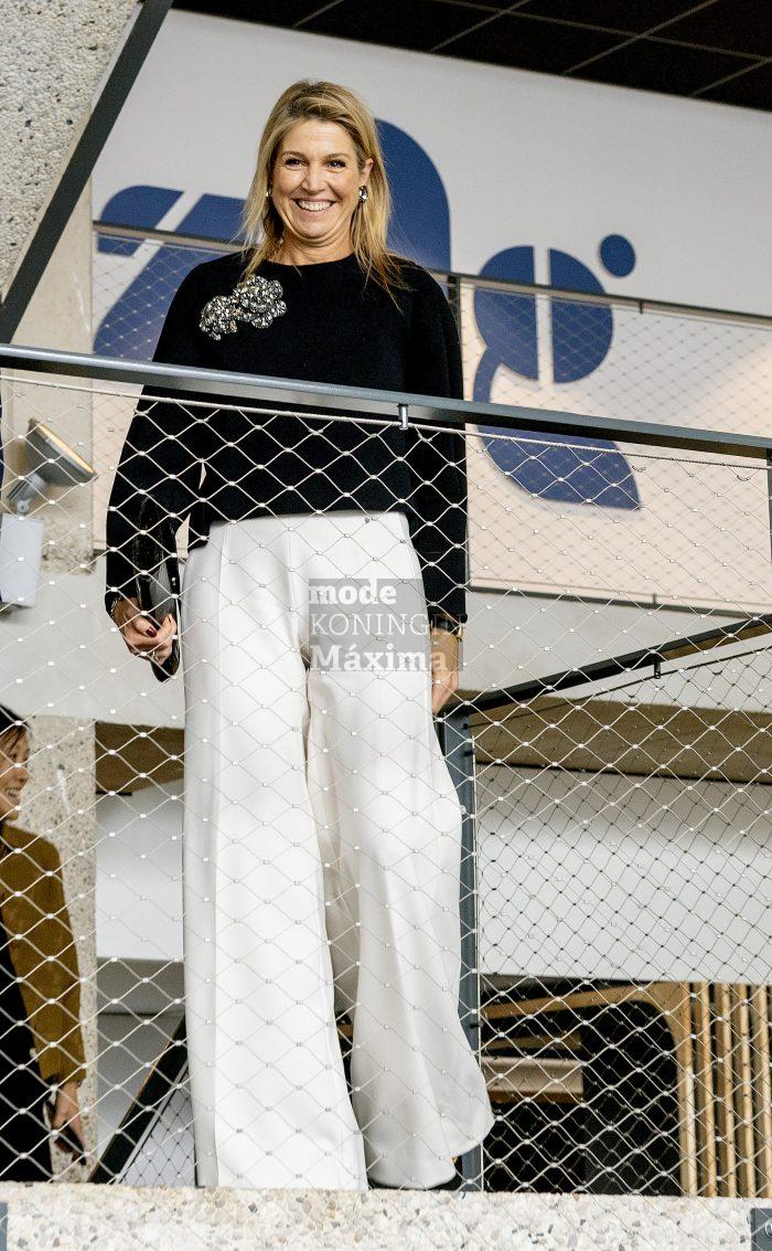 Koningin Máxima draagt vandaag een gezellige, lekker warme top, tijdens haar bezoek aan Houten en Oss. Máxima bezocht familiebedrijf ADG in Houten én ging daarna door naar Oss.