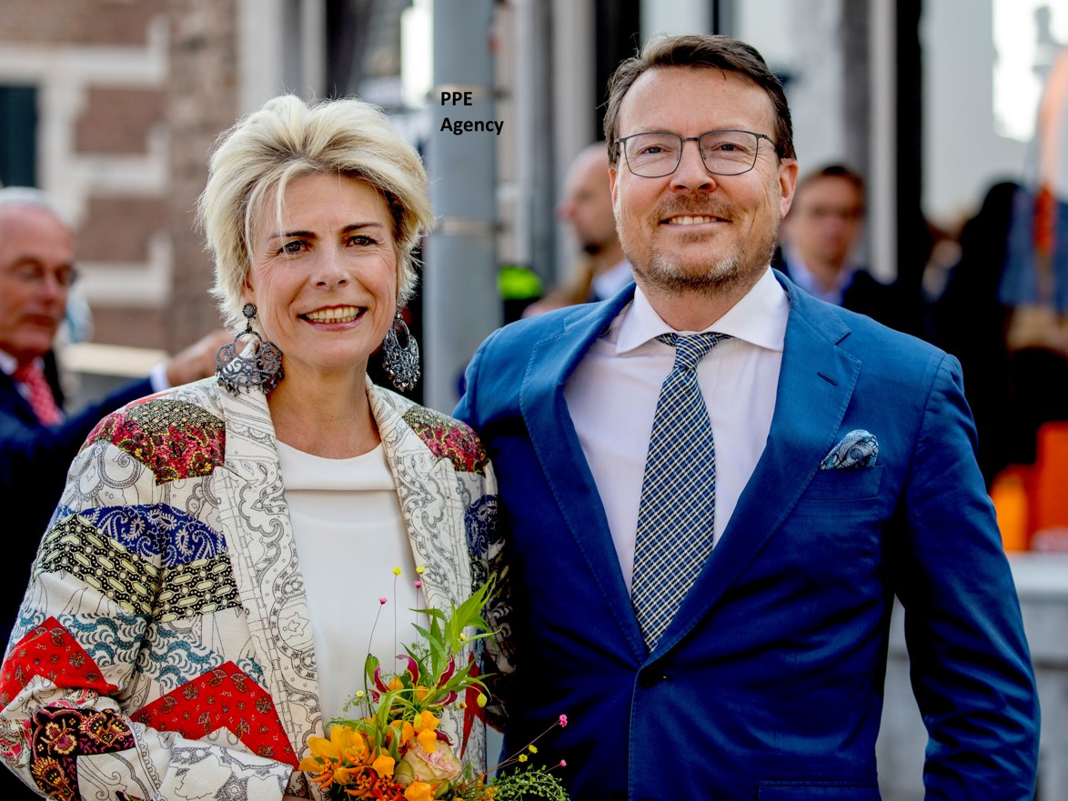 Prinses Laurentien draagt vandaag een Palazzo broek en blazer van Etro en een top die is ontworpen door Hardies.