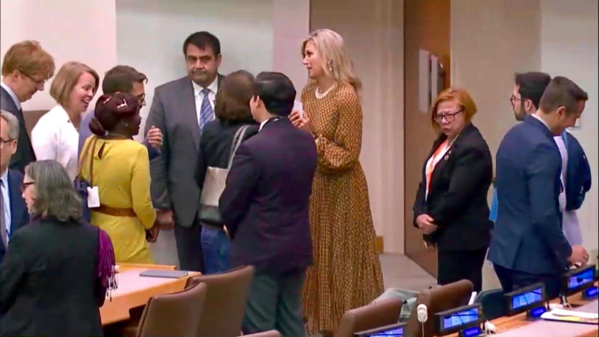 Máxima begint werkdag met ontbijt bij Bloomberg: Koningin Máxima is woensdag haar werkdag in New York vroeg begonnen. https://t.co/A81FwX6Kcs pic.twitter.com/mEBhE4Ljy7