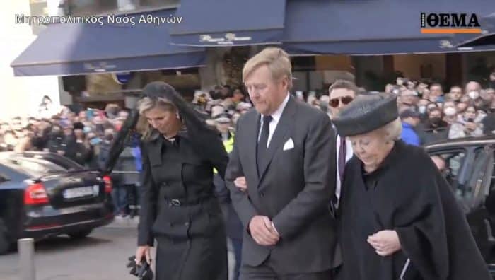 Wat mij intrigeert: WA, Máxima en Beatrix zijn in Griekenland als privépersoon. De begrafenis staat niet vermeld in de koninklijke agenda, er is ook geen officiële mededeling gedaan over hun aanwezigheid. Zou dat komen door de politieke situatie? En net zo interessant: heeft dat invloed gehad op Máxima’s voorkomen?