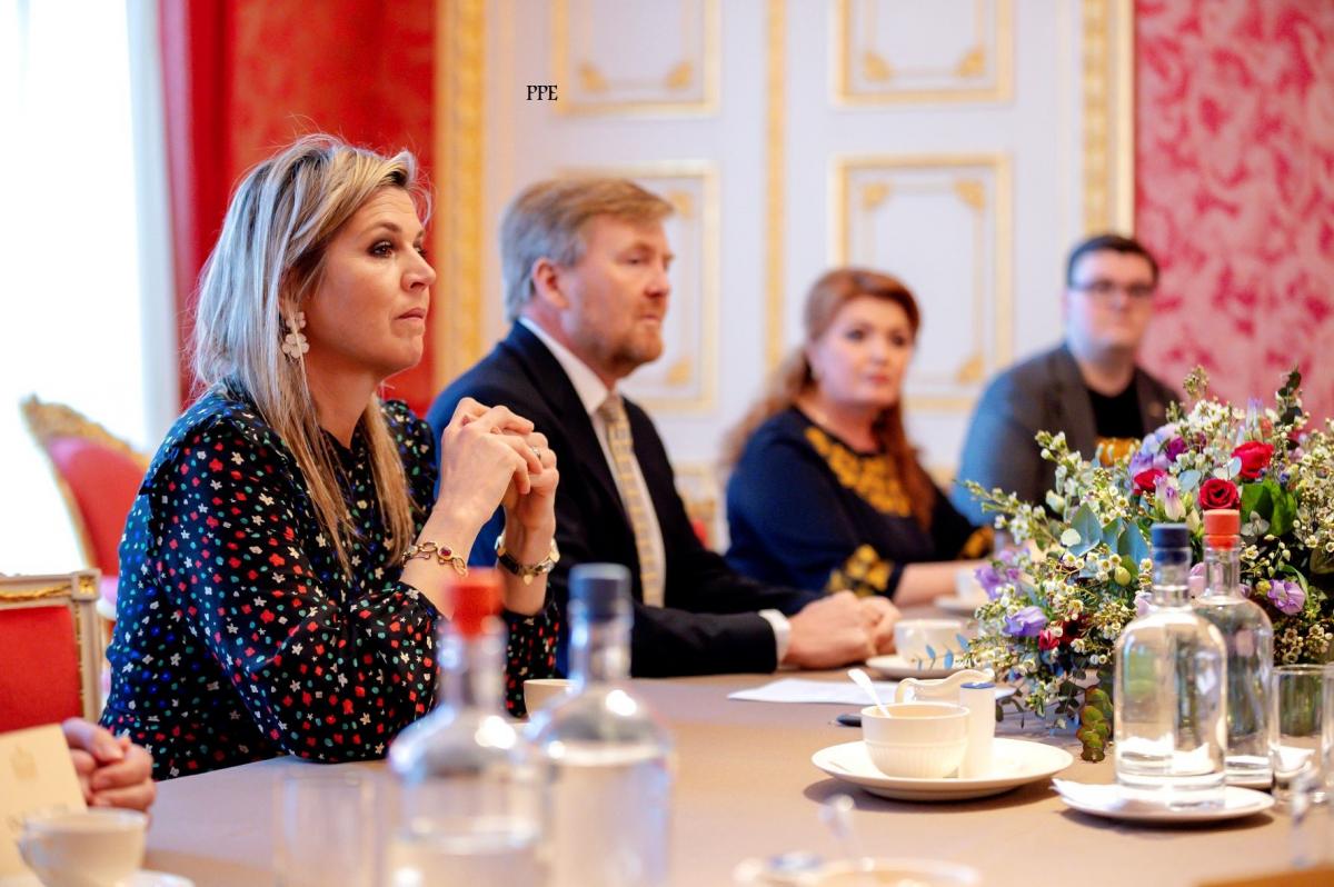 Op Paleis Noordeinde sprak het koningspaar met een groepje Oekraïners over de situatie in het land. Naast de ambassadeur was ook voetballer Evgeniy Levchenko aanwezig.