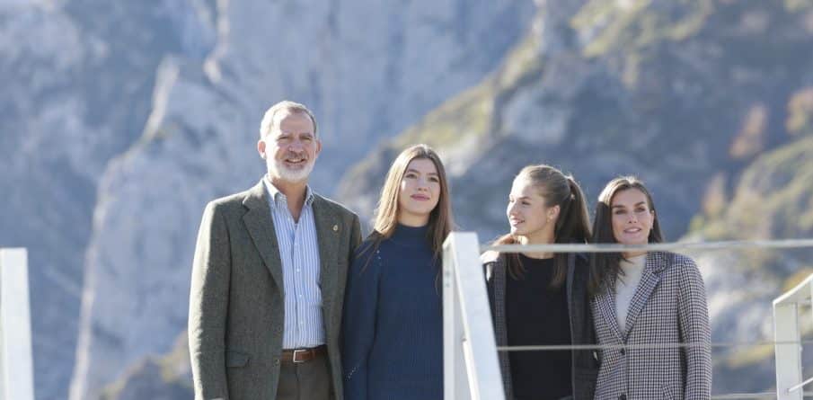 Koning Felipe, koningin Letizia, prinses Leonor en infanta Sofia bezochten zaterdag de winnende stad van Asturië, als laatste onderdeel van hun bezoek aan Asturië (of Asturias in het Spaans). En dát levert ontspannen plaatjes op. Het lijken wel vakantiekiekjes.