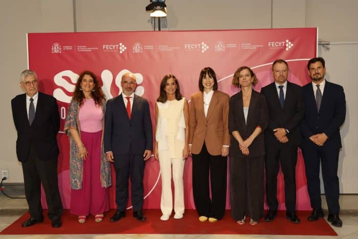 Koningin Letizia droeg gisteren een bijzondere gevlochten top. Ze was als voorzitter aanwezig bij de finale van de wedstrijd voor wetenschappelijke monologen “Sólo de Ciencia”. Het doel van deze wedstrijd is, om onderzoekers al vanaf het begin van hun professionele carrière te betrekken bij wetenschappelijke verspreiding.