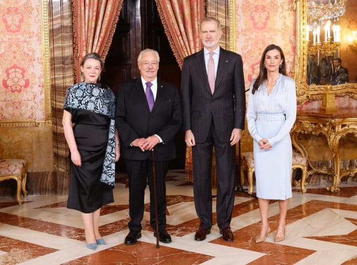 Verrassing: koningin Letizia droeg donderdag een wat blauw/lila tint jurk tijdens de uitreiking van de Miguel de Cervantes-prijs. Felipe en Letizia hebben deze prijs voor Spaanse literatuur van 2025 toegekend aan de schrijver Gonzalo Celorio. Hij heeft de prijs ontvangen vanwege “zijn uitzonderlijke literaire werk en de intellectuele inspanningen, waarmee hij op een diepgaande en duurzame wijze heeft bijgedragen aan de verrijking van de taal en de Spaanse cultuur”.