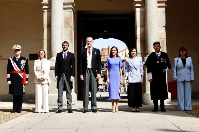Op woensdag waren Felipe en Letizia aanwezig bij de traditionele bijeenkomst ter gelegenheid van de uitreiking van de Cervantesprijs 2025. De bijeenkomst was een eerbetoon aan de laureaat van dit jaar, de schrijver Gonzalo Celorio. Hier koos koningin Letizia voor een lichtblauwe rok met een lichtblauwe blouse, beide afkomstig van het label Hugo Boss.