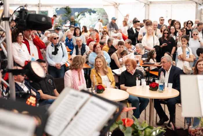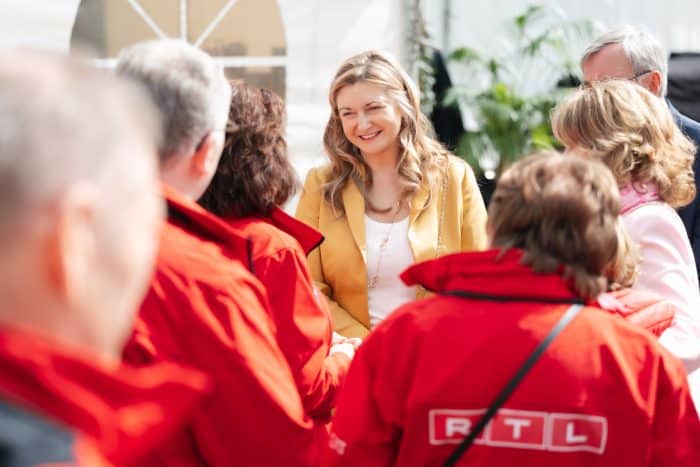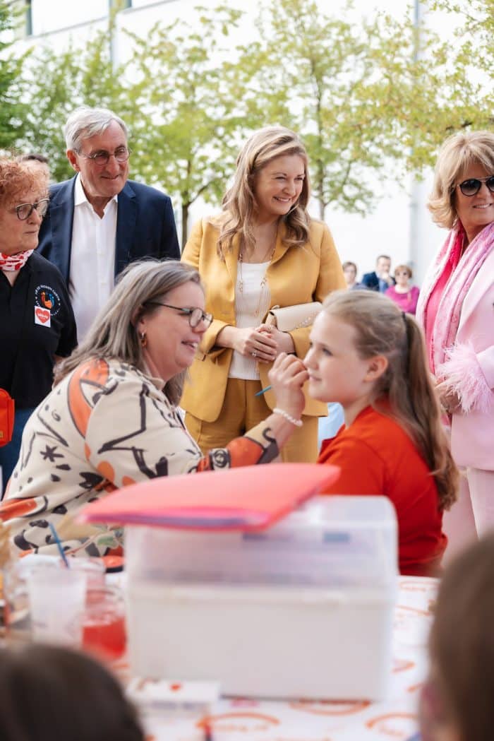 Al meer dan een kwart eeuw mobiliseert Télévie jaarlijks mensen in Luxemburg rond een gemeenschappelijk doel: het ondersteunen van kankeronderzoek. Afgelopen zaterdag sloten groothertog Guillaume en groothertogin Stéphanie zich aan bij de laatste etappe van deze fondsenwervende marathon. Stéphanie ging gekleed in een okergeel broekpak van Modehuis Natan, met een witte top.