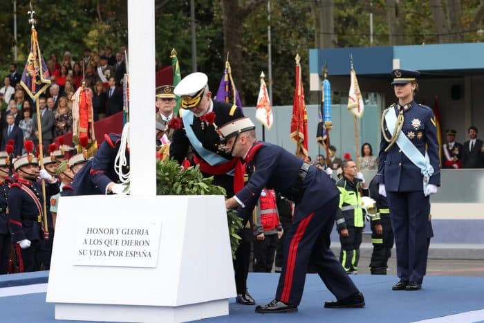 Koning Felipe en koningin Letizia waren gisteren, samen met de prinses van Asturië en Infanta Sofía, aanwezig bij de Nationale Feestdag. Het Spaanse koninklijk gezin was aanwezig bij de plechtige ceremonie ter ere van de nationale vlag en de militaire parade op de Plaza de Cánovas del Castillo. Aansluitend organiseerden de koning en de koningin de traditionele receptie ter ere van de Nationale Feestdag in het Koninklijk Paleis in Madrid.