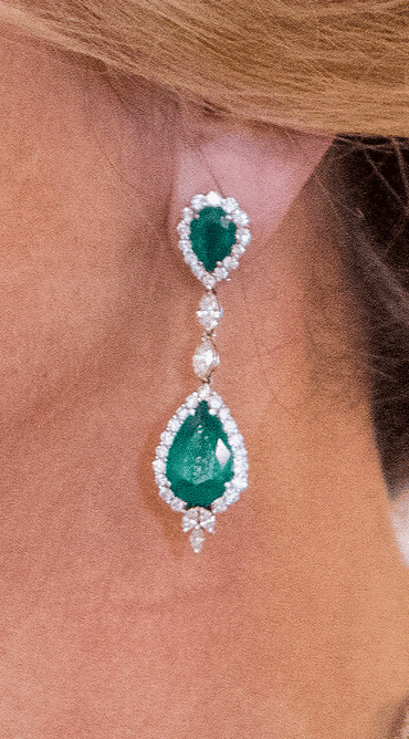 In december 2006 werd Máxima voor het eerst gezien met oorhangers van diamant en Colombiaanse smaragd. Ronde, zachte vormen vind ik bij edelstenen mooier dan hoekige. Dit paar staat bij mij dan ook op de tweede plek.