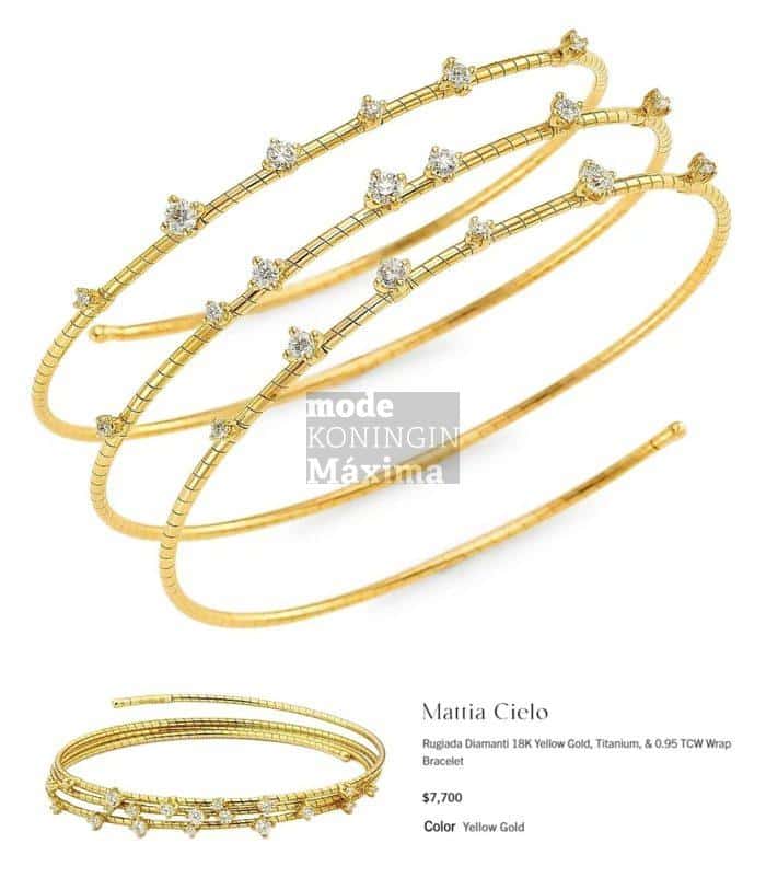 Scherp gezien; prinses Ariane droeg inderdaad een prachtige armband van goud en diamant. Ik vermoed een privébezit, want we hebben hem nog niet gezien bij andere familieleden. Voor zover ik nu kan zien, betreft het een juweel van Mattia Cielo. Dit merk wordt verkocht bij juwelier Steltman.