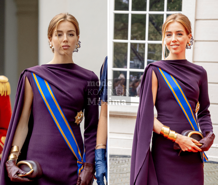 Alle drie hadden ze een tasje van Máxima bij zich. Amalia’s tasje met stenen sluiting komt uit een eerdere collectie van Kayu en werd in 2020 gebruikt door Máxima. De opvallende tas van Alexia komt van Zara en werd ook eerder bij Máxima gespot. Ariane leende een clutch met blauwe strass-steentjes.