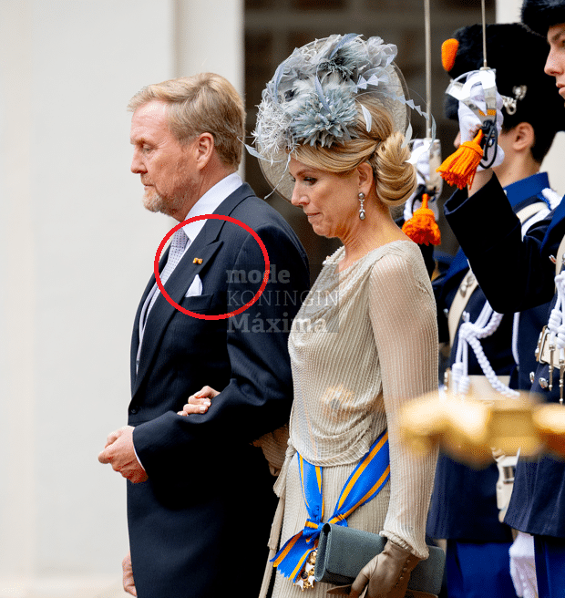 Bij de dresscode ‘morning coat/morning suit’ draag je geen ordelint, maar een draaginsigne. Een klein speldje dus. De koning droeg op Prinsjesdag het draaginsigne Ridder Militaire Willems-Orde.
