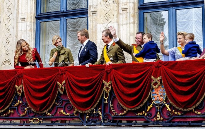 Antwoord: Blijkbaar is dat gebruikelijk in Luxemburg. Ik heb even foto’s opgezocht van 7 oktober 2000, toen Henri groothertog werd. Toen verscheen koningin Beatrix ook op het balkon, evenals koning Albert en koningin Paola, als aanwezige buitenlandse koninklijke gasten.