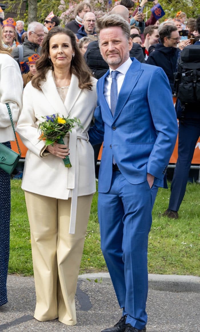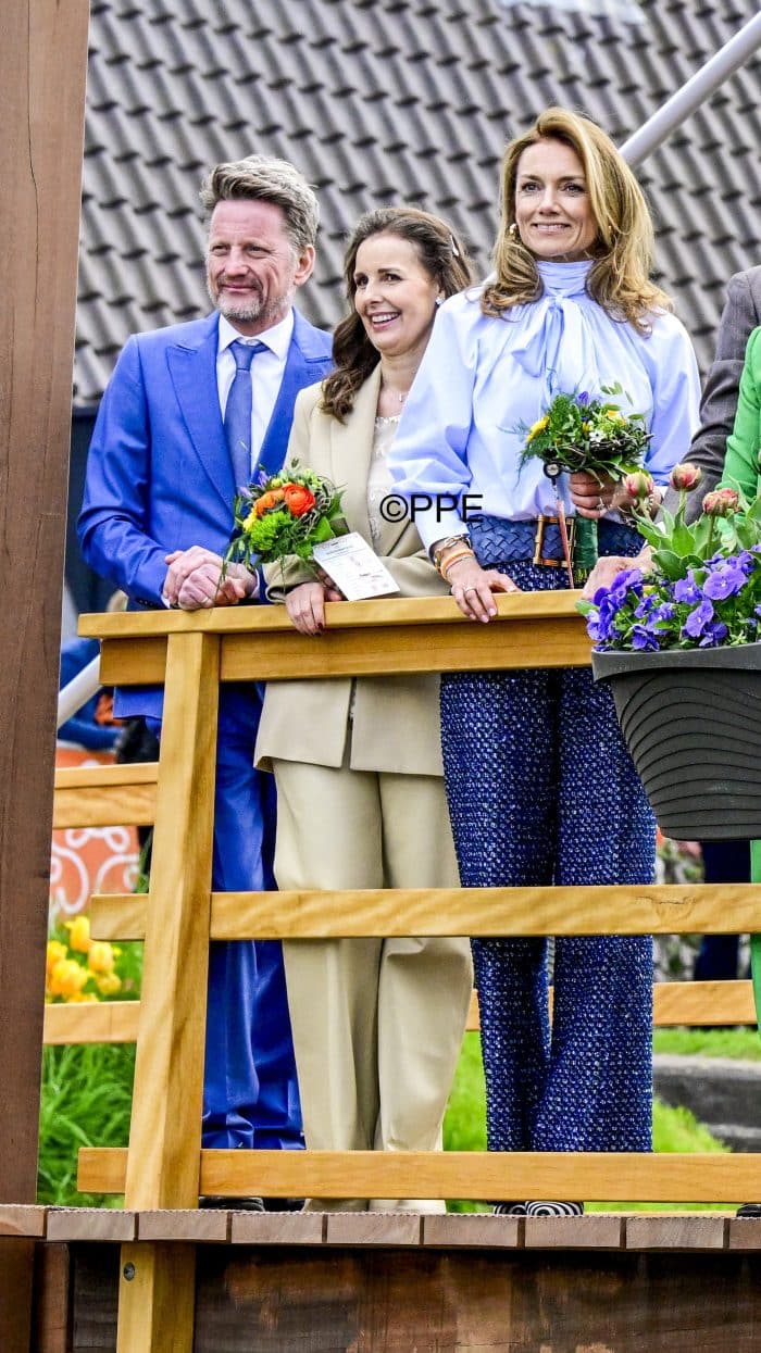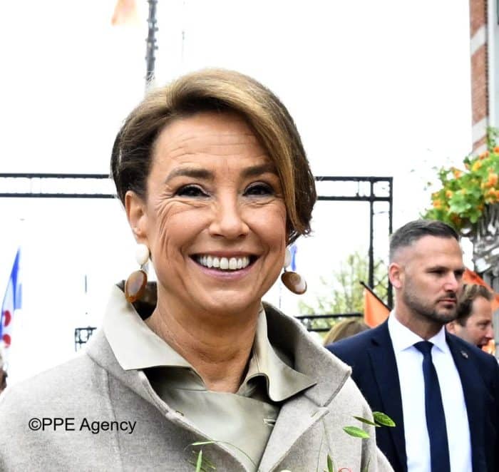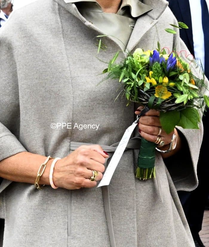 Qua sieraden van prinses Marilène: de vrouw van prins Maurits droeg haar schakelarmband, die afkomstig is van haar favoriete sieradenlabel Choices by DL. Met dank aan Linda kunnen we melden dat haar oorhangers afkomstig zijn van Sézane.