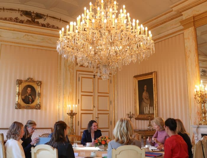 Koningin Mathilde ging in gesprek met experts over familiaal geweld. Samen bespraken ze hoe een goede samenwerking tussen verschillende sectoren – van hulpverlening en justitie, tot gezondheidszorg – slachtoffers nog beter kan beschermen en ondersteunen. Thema’s als preventie, sensibilisering, opvang en traumaverwerking stonden centraal. In de komende weken zal de koningin ook werkbezoeken afleggen, om met organisaties én slachtoffers persoonlijk in contact te komen. Tijdens het overleg ging koningin Mathilde gekleed in een roze ensemble van Natan. Ze droeg deze outfit 5 keer eerder, in 2023 en in 2025.