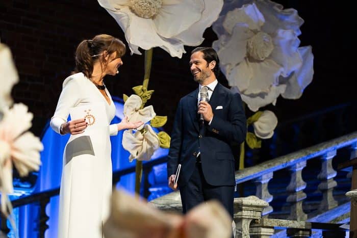 De Academie voor Zweedse Volkscultuur van Gustav Adolf vierde gisteren, op Gustav Adolfsdag, haar feestelijke bijeenkomst in aanwezigheid van de kroonprinses en prins Daniel. Kroonprinses Victoria droeg een wijnrode fluwelen galajapon.
