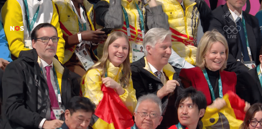Koning Filip, koningin Mathilde en prinses Eléonore zaten gisteren op de tribune bij het schaatsen op de Olympische Spelen in Milaan. Helaas geen medaille voor de Belgische schaatsers, maar ze werden wel enthousiast aangemoedigd door de Belgische royals. Koningin Mathilde droeg een rood broekpak van Dries van Noten. Prinses Eléonore draagt onder haar gele Team België jas een wit jasje met zandkleurige accenten van Emporio Armani.