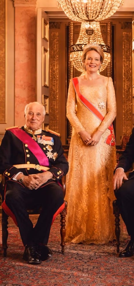Erg mooi Mathilde, simpel model maar prachtig gemaakt en zo mooi dat sleepje, hoort vind ik zelf wel bij een galajapon, en die stof, lijkt wel goud brokaat. En haar bekende’ tiara, prachtig! Koningin Sonja mooi, voor haar leeftijd met een verlengde top, goed gedaan en de prachtige tiara 🤩. Beide koninginnen zeer stijlvol, chique en elegant. Trouwens de heren mogen er ook zijn. Ik hou van uniformen.