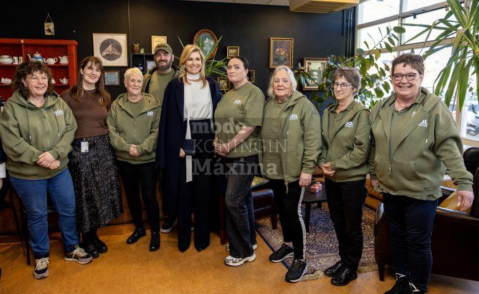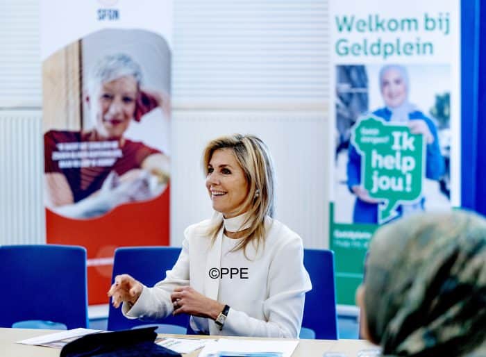 Koningin Máxima draagt vandaag een bijzondere nieuwe blouse tijdens het bezoek aan Rotterdam Feijenoord, in het kader van financiële gezondheid.