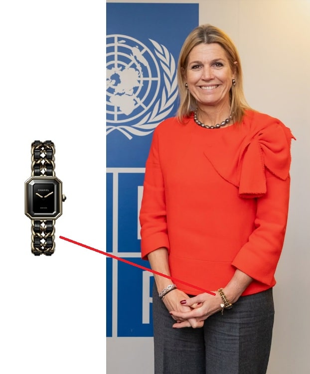 Vanmiddag is ze weer op pad in Rotterdam, maar tot vannacht was Máxima nog in New York vanwege haar baan bij de VN. Tijdens een poseermoment met UNDP-director Alexander de Croo dook er een bijzonder horloge van Chanel op om de pols van Máxima.