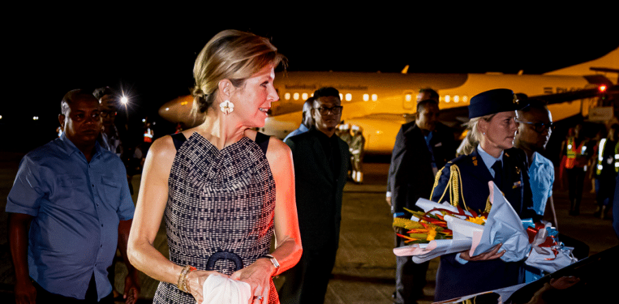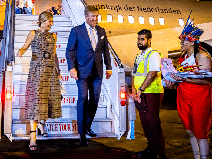 Het staatsbezoek aan Suriname is begonnen! Gisteren kwam het koningspaar aan in het regeringsvliegtuig. Máxima droeg bij de start van het staatsbezoek aan Suriname een ‘nieuwe’ jurk.