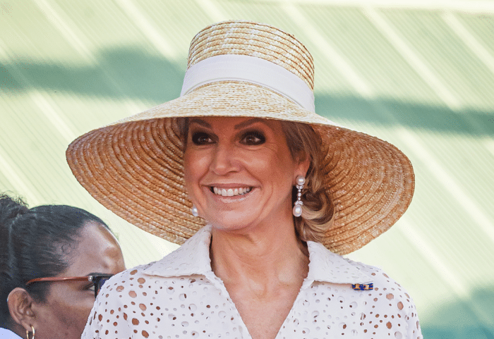 Wit is ook de kleur van vrede, van harmonie. Dat geeft toch ook wel een heel mooi signaal af, richting Suriname. Met de aanvaarding van de door WA gemaakte excuses richting het slavernijverleden, de gesprekken die hier over gaan, de gelijkwaardigheid waar het over gaat. Ik vind het een goed doordacht statement om voor wit te gaan. En de broderie en de chique versie van een zonnehoed geeft er luchtigheid en een zomerse tint aan.