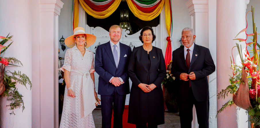 Het bezoek begint op dag 1 met een formele welkomstceremonie en overleg met president Geerlings-Simons en ministers. De Koning spreekt voor De Nationale Assemblée, en er is aandacht voor de rechtstaat met een bezoek aan het Hof van Justitie. De dag staat in het teken van reflectie en dialoog, inclusief ontmoetingen met nazaten van tot slaaf gemaakten en inheemse gemeenschappen. De eerste dag wordt op passende wijze afgesloten met een staatsbanket aangeboden door de president, als hoogtepunt van de formele diplomatie.