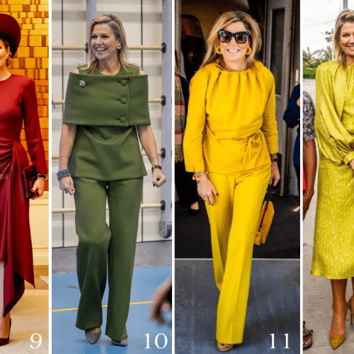 Een staatsbezoek vraagt om pracht en praal, zelfs als de temperaturen tropisch zijn. Op de strik rond Máxima’s taille is dan ook een grote broche gespeld. Het betreft een oranjejuweel van parel en diamant. Omdat de Oranjes twee sterk vergelijkbare broches in hun bezit hebben, waar alleen het aantal diamanten van verschillen, wacht ik even scherpere beelden af. In tussentijd kun je vast de blog lezen over het verschil tussen beide juwelen. Een mooie blog met veel mooi beeld. Aanrader!