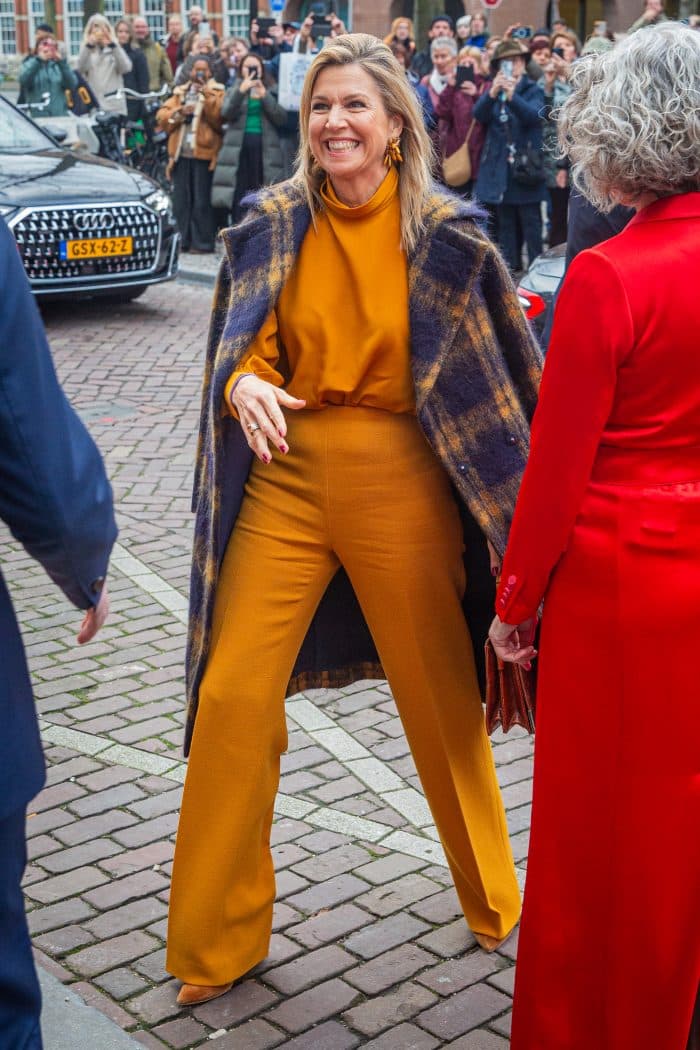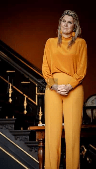 Ik draag nooit oranje, alleen met Koningsdag soms een shirt, maar meestal alleen een oranje accessoire. Het staat Maxima goed, ook pumps in de kleur en de jas staat er mooi bij. Andere oorbellen dan de vorige keer, kunnen allebei goed.