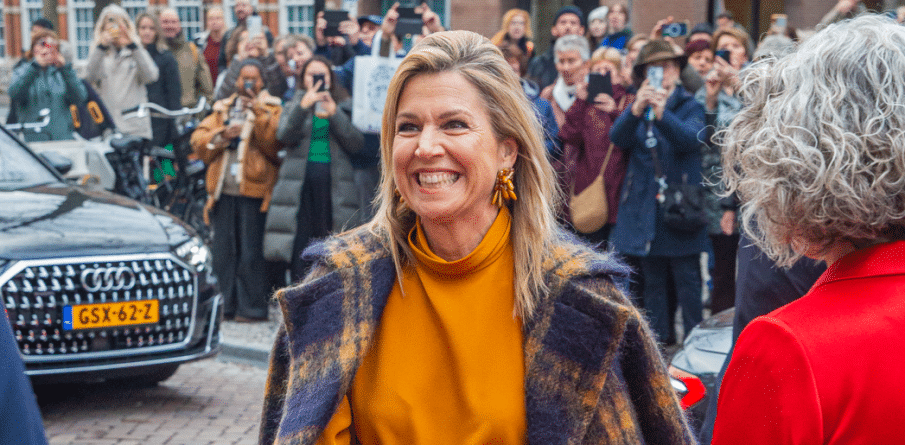 Voor de filmpremière van ‘Blij dat je betaald hebt’ hulde Máxima zich vanmiddag van top tot teen in het oranje.