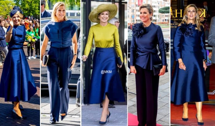 En dan zijn er ook nog verscheidene donkerblauwe jurken, die Máxima graag draagt. Met haar nieuwe voorliefde treedt de koningin overigens in de voetsporen van haar schoonmoeder Beatrix, die we konden uittekenen in de kleur die wordt geassocieerd met stabiliteit en betrouwbaarheid.