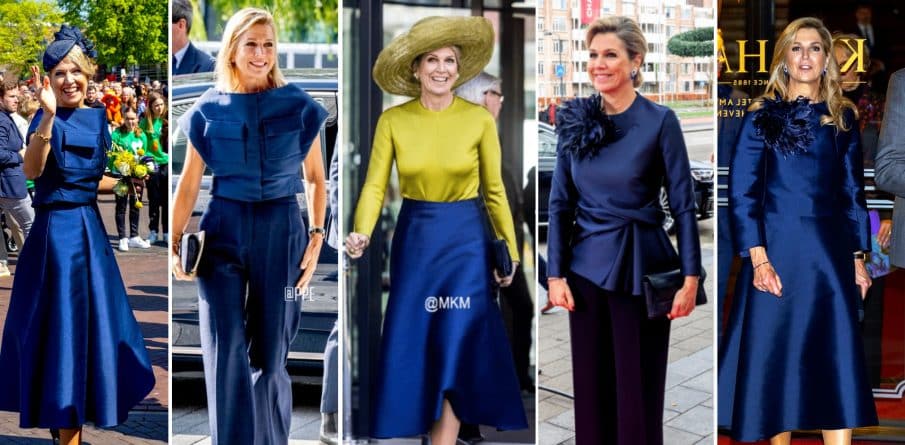 Fashionwise is ze onvoorstelbaar onvoorspelbaar. Toch heeft Máxima momenteel een overduidelijke voorkeur voor donkerblauw. Gisteren dook er weer een nieuwe set op in deze kleur.