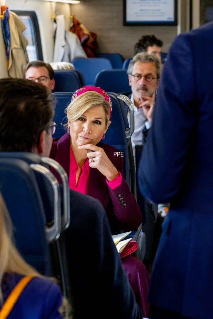 Helemaal geweldig, lekker pittig en ontzettend stijlvol zo die mooie pump met dat broekpak, prachtig. En het kapsel vind ik zo mooi, van achteren gezien ook helemaal prima. Ik kijk hier echt 100x liever naar dan naar die grijze muis uit Engeland gisteren 😜. Wat een X-factor heeft onze queen. Eerste foto staand hierboven beetje een slecht moment maar op bewegend beeld ziet ze er fantastisch uit.