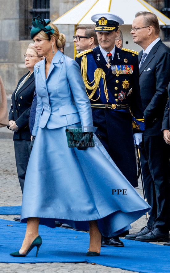 Hoewel de kledingset van Maxima niet mijn favoriet is vind ik dat ze er toch goed uitziet. Ik vind de lichte kleuren blauw haar erg mooi staan.