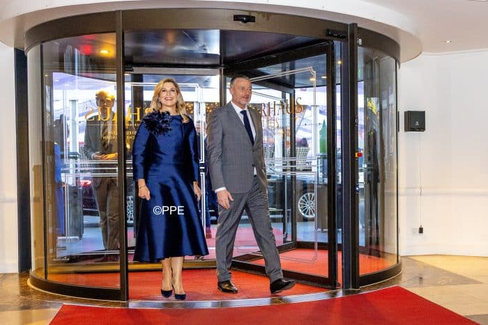 Kapsel mooi, mooie oorbellen en de kleur staat Maxima goed.
