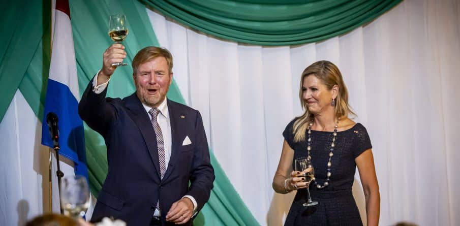 De koningin wisselde van jurk voor het persgesprek met de Nederlandse journaille. Eerder die dag had ze een boottocht over de Surinamerivier gedaan en een bezoek gebracht aan Frederiksdorp. Als alleen het persgesprek nog op de planning had gestaan, was er waarschijnlijk geen kledingwissel geweest. Ná het persgesprek was er nog een ontmoeting met de Nederlandse gemeenschap in Suriname. Om aan deze mensen eer en respect te bewijzen, trok ze haar donkerblauwe jurk aan van Natan. Het kledingstuk debuteerde in 2016.