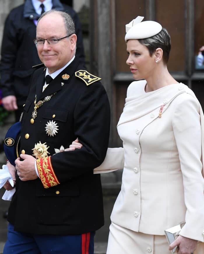 Eerder zagen we Charlène ook al met een wit cocktailhoedje van Philip Treacy, bij de kroning van koning Charles.
